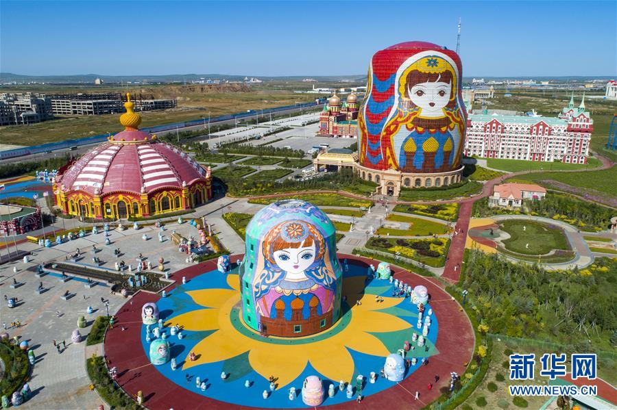 8月29日無(wú)人機(jī)拍攝的滿(mǎn)洲里市套娃廣場(chǎng)景區(qū)。滿(mǎn)洲里市位于呼倫貝爾大草原腹地。新華社記者沈伯韓攝