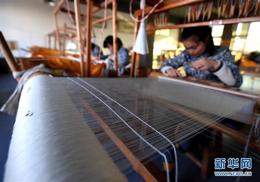 12月14日,在河北定州緙絲傳習(xí)基地,工作人員在制作緙絲。 新華社記者 王曉 攝