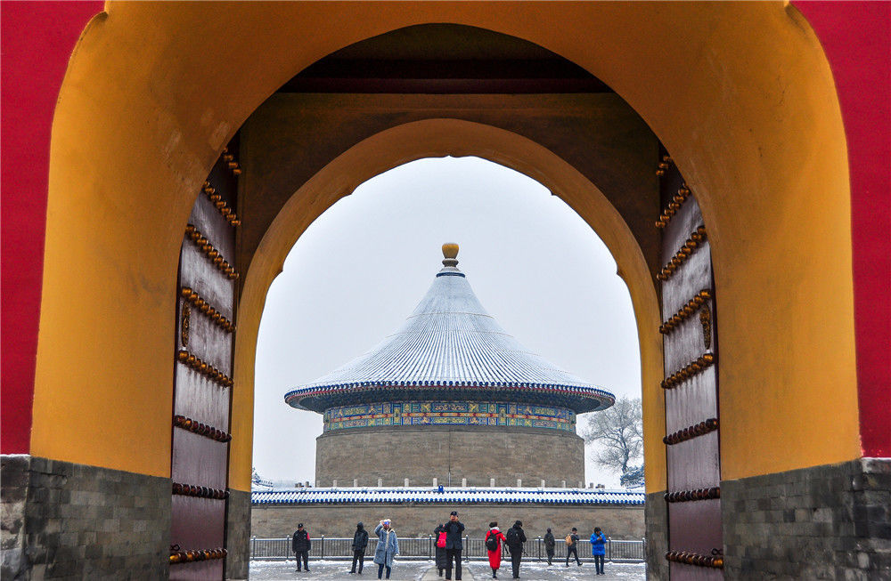 2019年11月30日,北京,初雪過后,天壇公園銀裝素裹,白雪古建相互映襯,景色迷人。時(shí)永平/千龍圖像/視覺中國