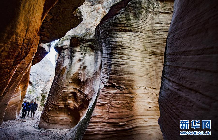 12月17日,游人在志丹縣雙河鎮(zhèn)毛項(xiàng)峽谷內(nèi)游覽。毛項(xiàng)峽谷位于陜西省延安市志丹縣雙河鎮(zhèn)毛項(xiàng)村,峽谷全長12公里,分為9段,曲折綿延,谷內(nèi)石壁凹凸不平,其中最窄處只能容一人側(cè)身通過,堪稱黃土高原上的自然奇觀。新華社記者陶明攝