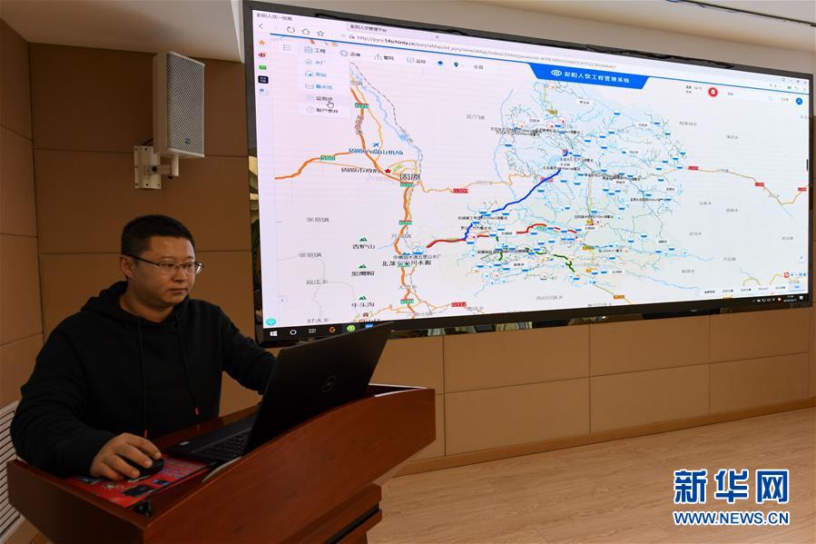 在寧夏固原市彭陽(yáng)縣供水管理總站中控室,工作人員展示彭陽(yáng)人飲工程管理系統(tǒng)(10月11日攝)。 新華社記者 馮開(kāi)華 攝
