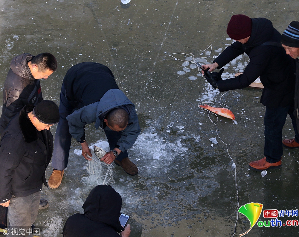 2018年12月26日,吉林松原,查干湖迎來了“紅網(wǎng)”,單網(wǎng)捕撈約30萬斤。