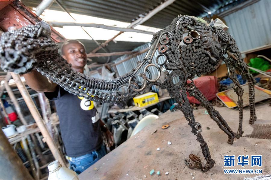 12月20日,在肯尼亞內(nèi)羅畢庫奧納藝術(shù)中心,一名藝術(shù)家展示裝置藝術(shù)作品。成立于1995年的庫奧納藝術(shù)中心位于肯尼亞首都內(nèi)羅畢市區(qū),目前有17間雕塑、繪畫等藝術(shù)工作室。中心不定期舉辦藝術(shù)展覽活動(dòng),園區(qū)內(nèi)陳列有各類涂鴉墻及裝置藝術(shù)作品。   新華社記者 王騰 攝