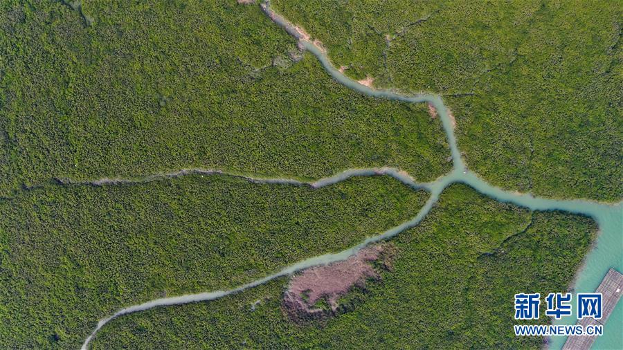 12月21日無(wú)人機(jī)拍攝的廣西合浦縣黨江鎮(zhèn)更螺圍出海口一景。冬日,廣西廉州灣海域風(fēng)光別致。新華社記者張愛(ài)林?jǐn)z