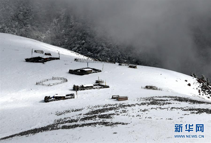 這是318國(guó)道剪子彎山段,大雪過后銀裝素裹(10月17日無人機(jī)拍攝)。新華社記者江宏景攝