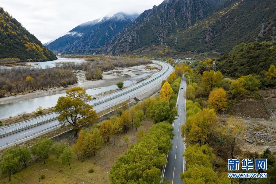 這是318國(guó)道西藏林芝市尼洋河谷段(10月27日無人機(jī)拍攝)。新華社記者江宏景攝