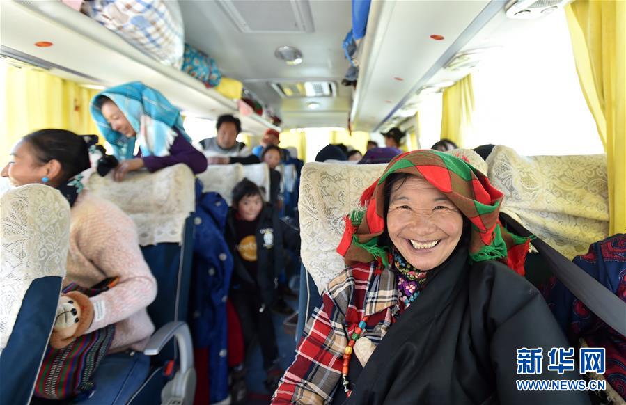 12月23日,貢嘎縣群眾迎接新來的村民。新華社記者覺果攝