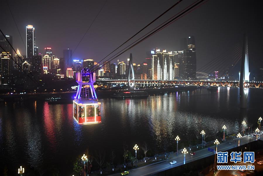 12月23日,“長江索道”在重慶夜空中運(yùn)行。