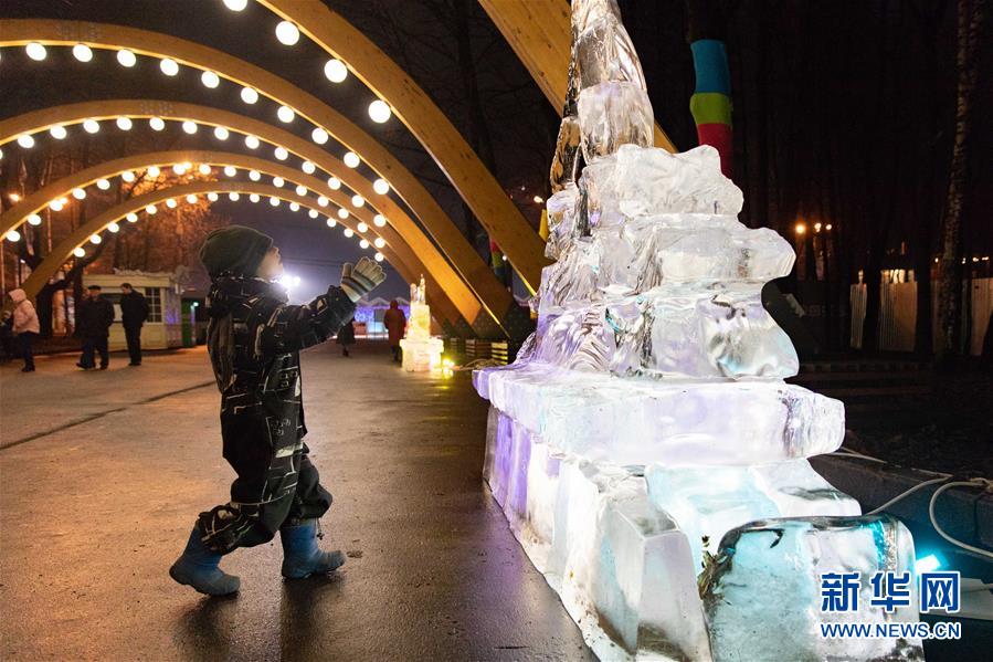 12月24日,在俄羅斯首都莫斯科,小朋友參觀冰雕藝術(shù)展。 哈爾濱冰雕藝術(shù)展24日在莫斯科開幕,現(xiàn)場(chǎng)展出了哈爾濱大劇院、防洪紀(jì)念塔以及莫斯科紅場(chǎng)建筑群等惟妙惟肖的冰雕作品,吸引眾多游客駐足拍照。 參加本次冰雕藝術(shù)展的十名冰雕師提前抵達(dá)莫斯科,以新中國成立70周年、中俄建交70周年、“一帶一路”倡議等為主題,為莫斯科民眾奉上了精美的新年禮物。 新華社記者 白雪騏 攝