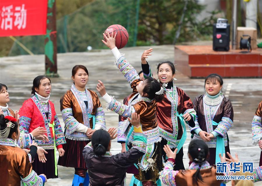 12月25日,苗族婦女參加趣味籃球比賽。  新華社記者 黃孝邦 攝