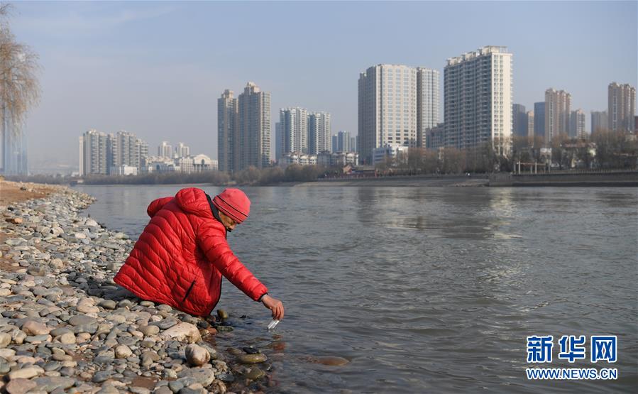 12月20日,冬泳愛(ài)好者孟猛在冬泳前測(cè)量水溫,當(dāng)日水溫僅為5攝氏度。新華社記者陶希夷攝