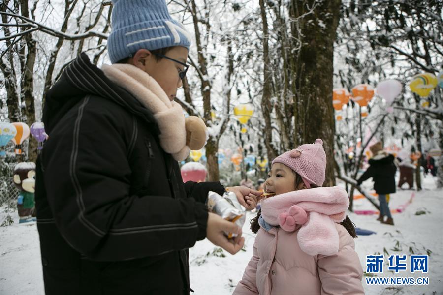 12月28日,小朋友在峨眉山風(fēng)景名勝區(qū)吃零食。新華社記者李夢(mèng)馨攝