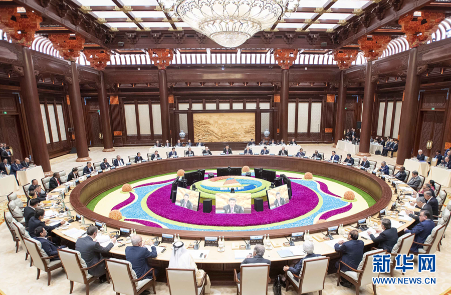 這是4月27日,第二屆“一帶一路”國際合作高峰論壇在北京雁棲湖國際會議中心舉行圓桌峰會,國家主席習近平主持會議并致開幕辭。 新華社記者 李濤 攝
