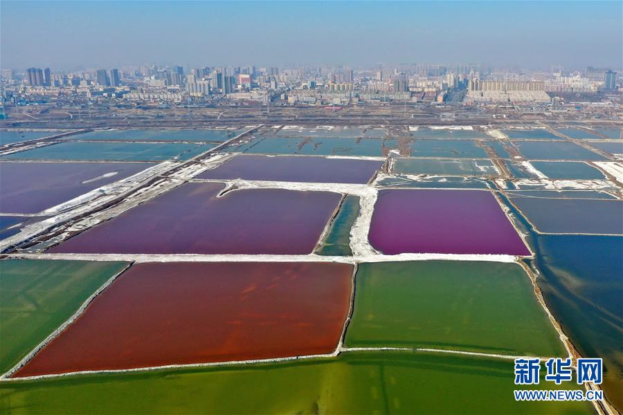 12月27日無人機(jī)拍攝的山西運(yùn)城鹽湖。 冬日時節(jié),從空中俯瞰位于山西省運(yùn)城市的鹽湖,景色如畫。 新華社記者曹陽攝