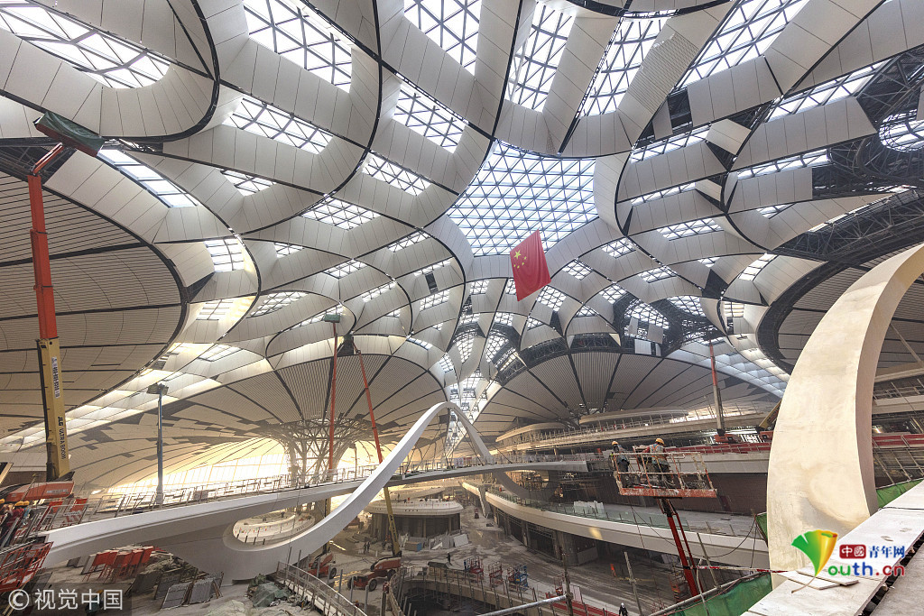 2018年12月19日,北京大興國際機場航站樓的室內(nèi)裝修正在推進(jìn)中。視覺中國