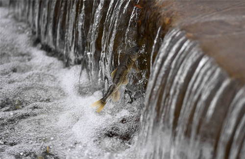 2019年7月6日,在青海省剛察縣沙柳河里,一條湟魚(yú)在洄游。新華社記者張宏祥攝