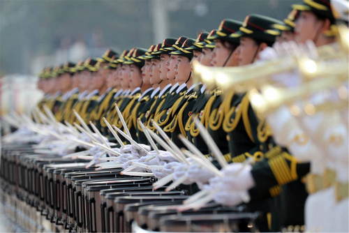 2019年10月1日,慶祝中華人民共和國(guó)成立70周年大會(huì)在北京天安門(mén)廣場(chǎng)隆重舉行。這是女兵方隊(duì)接受檢閱。新華社記者王毓國(guó)攝