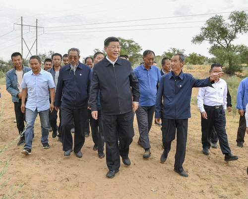 2019年8月19日至22日,中共中央總書(shū)記、國(guó)家主席、中央軍委主席習(xí)近平在甘肅考察。這是21日上午,習(xí)近平在武威市古浪縣八步沙林場(chǎng)察看林場(chǎng)整體風(fēng)貌,聽(tīng)取武威市防沙治沙整體情況匯報(bào)和八步沙林場(chǎng)“六老漢”三代人治沙造林的感人事跡。新華社記者謝環(huán)馳攝