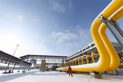 2019年11月19日,在位于黑龍江省黑河市的中俄東線天然氣管道北段黑河首站場(chǎng)區(qū),工作人員從管線旁經(jīng)過(guò)。新華社記者王建威攝