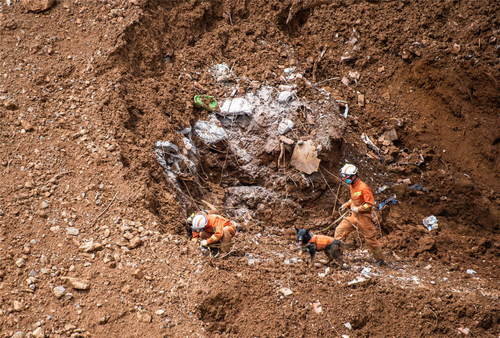 2019年7月26日,救援人員在貴州省水城縣“7·23”特大山體滑坡災(zāi)害現(xiàn)場(chǎng)進(jìn)行搜救。新華社記者陶亮攝