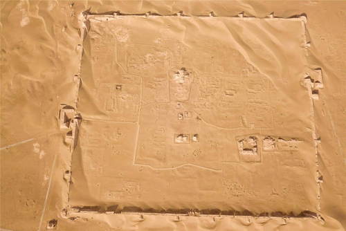 2019年10月18日拍攝的黑城遺址城池全貌(無(wú)人機(jī)照片)。黑城遺址位于內(nèi)蒙古阿拉善盟額濟(jì)納旗達(dá)來(lái)庫(kù)布鎮(zhèn),建于公元九世紀(jì),是草原絲綢之路上現(xiàn)存較為完整的一處古城遺址,2001年被列入第五批全國(guó)重點(diǎn)文物保護(hù)單位。新華社記者彭源攝