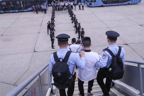 2019年6月7日,在北京首都國(guó)際機(jī)場(chǎng),94名冒充公檢法機(jī)關(guān)工作人員實(shí)施電信網(wǎng)絡(luò)詐騙的中國(guó)臺(tái)灣籍犯罪嫌疑人被我國(guó)公安機(jī)關(guān)從西班牙押解回國(guó)。這是我國(guó)首次從歐洲大規(guī)模押回電信網(wǎng)絡(luò)詐騙犯罪嫌疑人。新華社記者殷剛攝