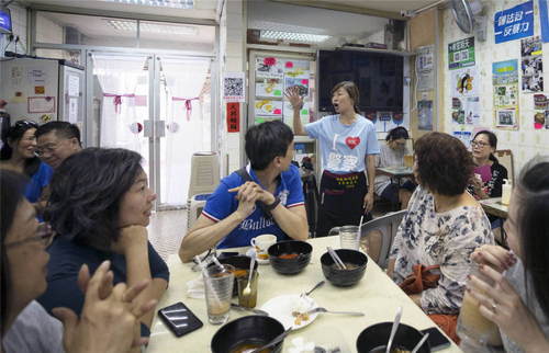 2019年10月10日,食客在李凱瑚位于香港九龍的茶餐廳里聚集,為她加油。51歲的李凱瑚是土生土長(zhǎng)的香港人,她多次參加撐警集會(huì),并在社交媒體上表態(tài)支持警察。遭到騷擾和恐嚇 但李凱瑚繼續(xù)勇敢支持警察,向市民發(fā)出號(hào)召,反對(duì)暴力。一些香港市民、內(nèi)地游客專程來(lái)到李凱瑚的茶餐廳,為她加油打氣,表達(dá)對(duì)香港的美好祝愿。新華社記者盧燁攝