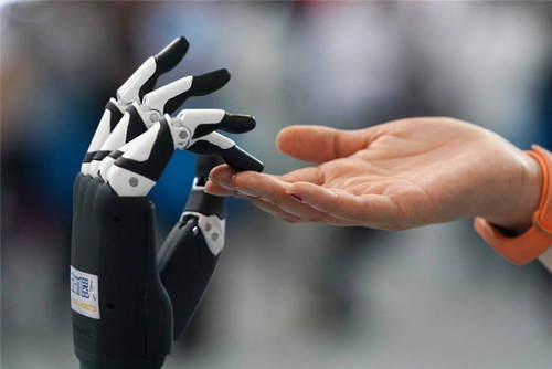 2019年6月13日,全國(guó)大眾創(chuàng)業(yè)萬(wàn)眾創(chuàng)新活動(dòng)周——北京會(huì)場(chǎng)主題展在中關(guān)村國(guó)家自主創(chuàng)新示范區(qū)展示中心開(kāi)幕。這是一位參展商在演示展出的機(jī)器人產(chǎn)品。新華社記者鞠煥宗攝
