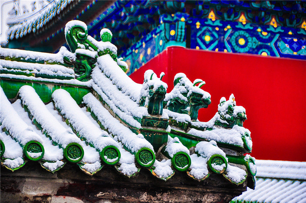 2019年11月30日,北京,初雪過后,天壇公園銀裝素裹,白雪古建相互映襯,景色迷人。時(shí)永平/千龍圖像/視覺中國