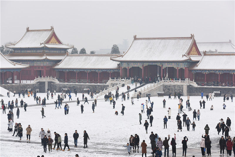 2019年11月30日,北京,初雪過后,故宮迎來大批賞雪游客。
