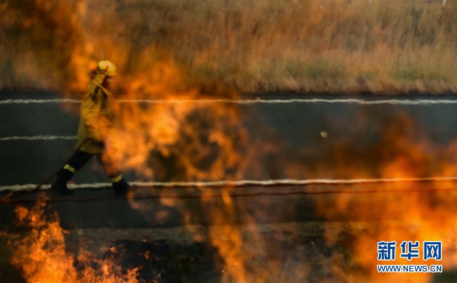 11月11日,在澳大利亞新南威爾士州塔里附近的山地,消防員參與滅火。新華社記者白雪飛攝