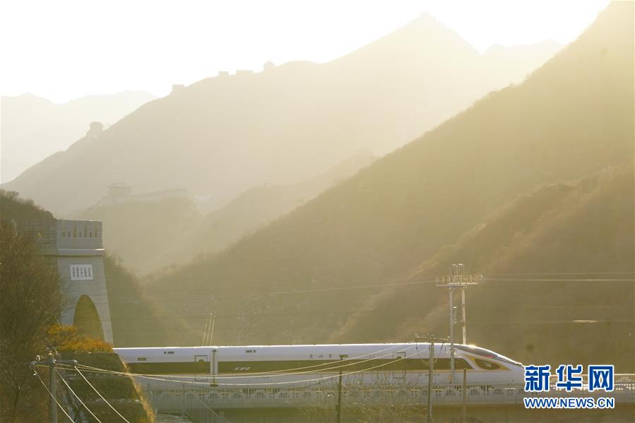 2019年12月30日,G2418次列車駛過居庸關長城。當日,北京至張家口高速鐵路開通運營。 新華社記者 邢廣利 攝