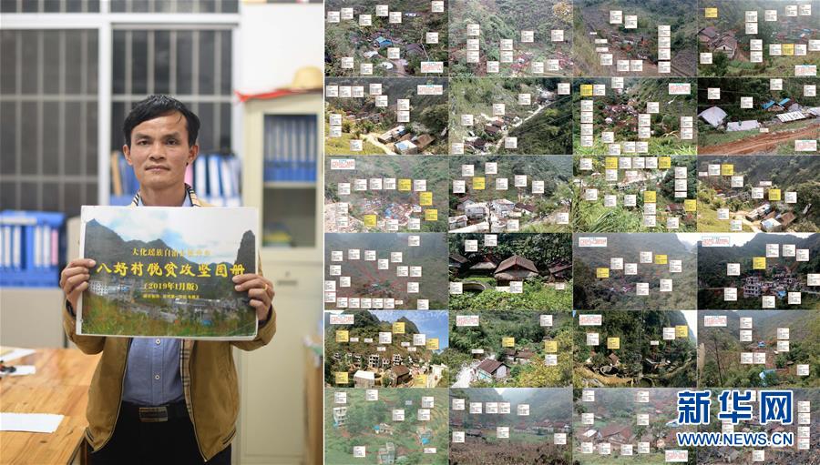 拼版照片:左圖為八好村駐村第一書(shū)記韋德王手持自己制作的“八好村脫貧攻堅(jiān)圖冊(cè)”(2019年12月16日,新華社記者黃孝邦攝);右圖為“八好村脫貧攻堅(jiān)圖冊(cè)”部分內(nèi)容的拼版照片(資料照片,韋德王攝)。