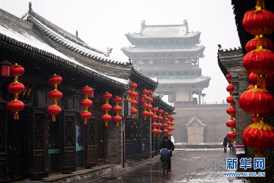 當(dāng)日,山西省平遙縣迎來(lái)降雪,雪中的平遙古城銀裝素裹,美景如畫(huà)。平遙古城是目前中國(guó)保存最完整的古代縣級(jí)城池之一,1997年被列入世界文化遺產(chǎn)名錄。