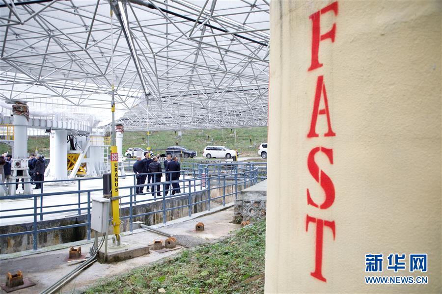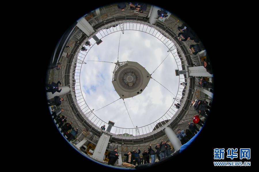 1月11日,專家學(xué)者對“中國天眼”進(jìn)行考察(檢修期間拍攝)。新華社記者劉續(xù)攝