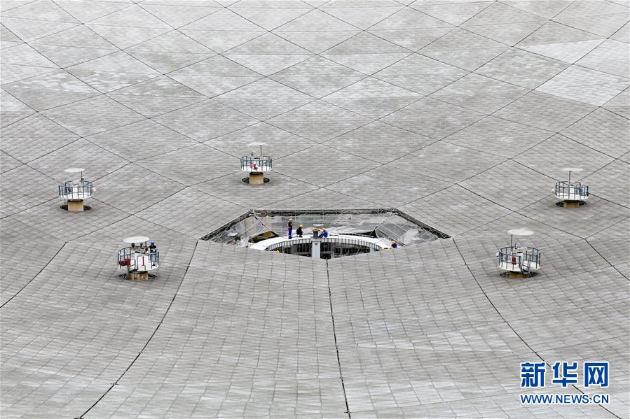 8月28日,工作人員在對FAST反射面板進(jìn)行檢修。新華社記者歐東衢攝