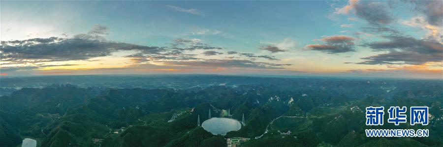 8月27日拍攝的落日余暉中的“中國天眼”。新華社記者歐東衢攝