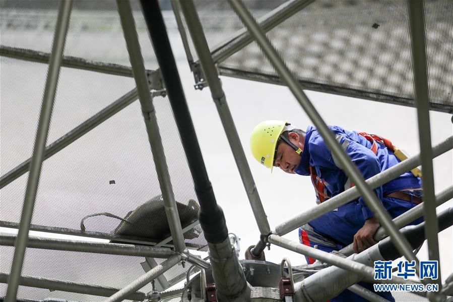 8月28日,工作人員在“中國天眼”內(nèi)進(jìn)行檢修。新華社記者歐東衢攝