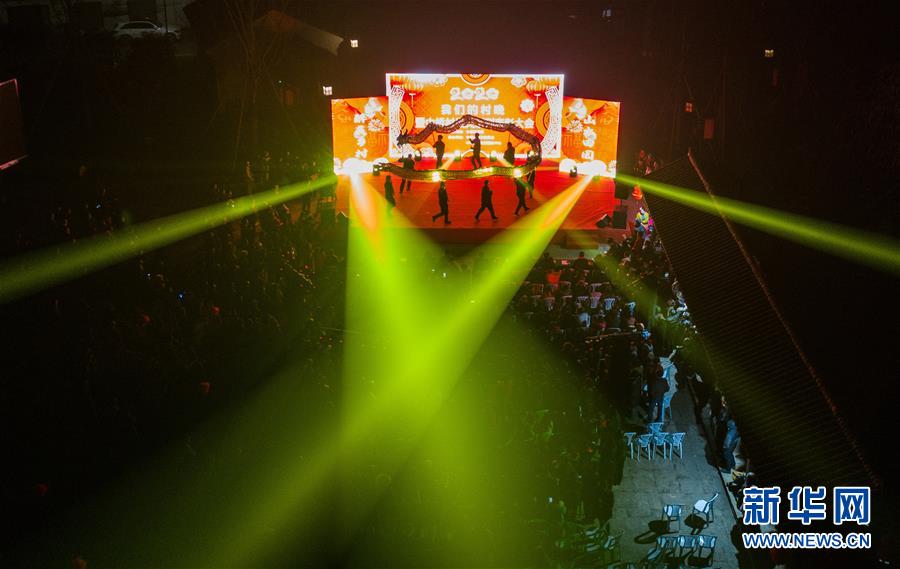 1月14日,杭州市余杭區(qū)中泰街道中橋村的文化公園內在進行“我們的村晚”表演。臨近春節(jié),浙江省杭州市余杭區(qū)中泰街道各村社的文化禮堂紛紛上演“我們的村晚”。老百姓自編、自導、自演為主的“土味”聯(lián)歡會因接地氣、親情濃而深受當?shù)匕傩盏南矏?,成為當?shù)剜l(xiāng)村百姓的新年迎春“文化大餐”。近年來,中泰街道以文化振興助推鄉(xiāng)村振興。目前,中泰街道下屬各村陸續(xù)建成文化禮堂7個、社區(qū)文化家園2個,努力培育和挖掘出一批鄉(xiāng)土文化人才及原創(chuàng)作品,2019年全年開展各類鄉(xiāng)村社區(qū)惠民文體活動累計180余場次。新華社記者徐昱攝