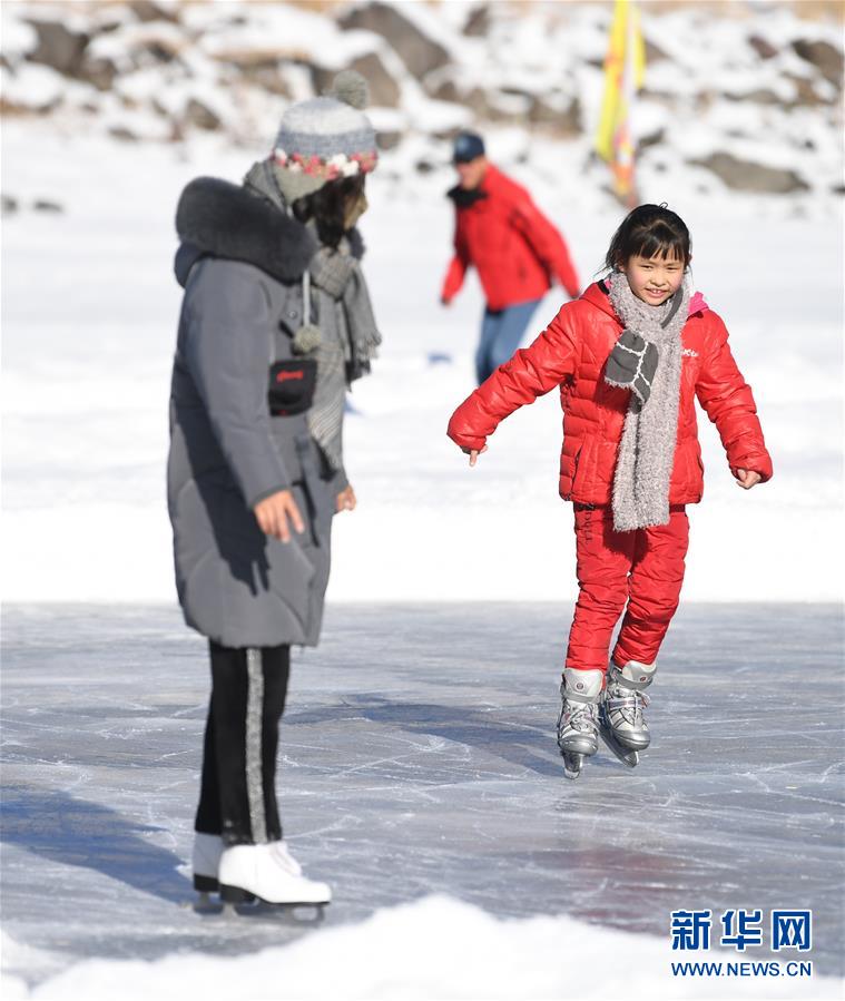1月18日,游客在新疆天池景區(qū)滑冰。新華社記者 沙達提 攝