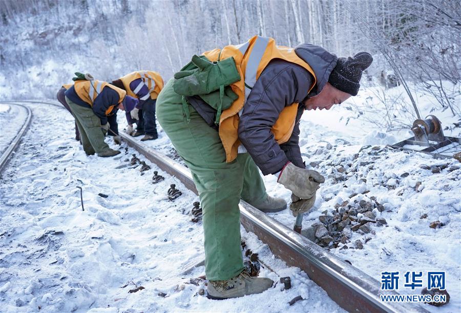 1月8日,西羅奇維修工隊(duì)工作人員在嫩林線497公里處進(jìn)行維修作業(yè)。新華社記者王毓國(guó)攝