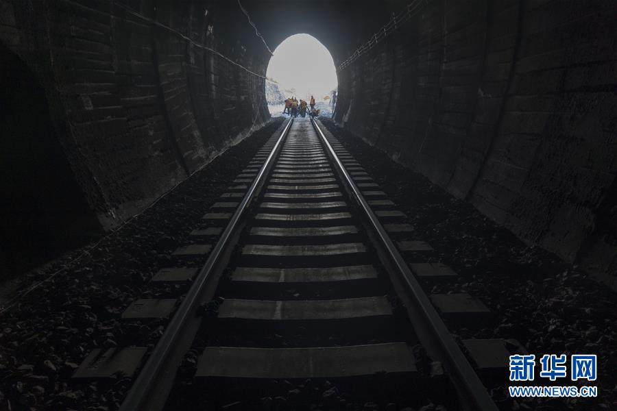 通化通信車間無(wú)線工區(qū)鐵路通信工人進(jìn)入全長(zhǎng)7088米的灣灣川隧道作業(yè)(1月10日攝)。2020年春運(yùn)1月10日拉開帷幕。新華社記者許暢攝