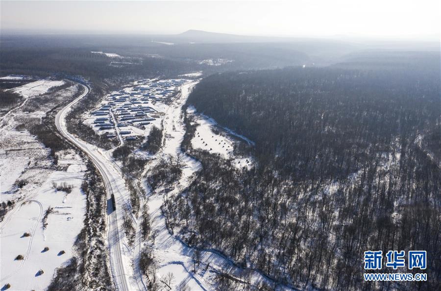“送水小火車”行駛在林海間,前往送水地點(diǎn)(1月17日攝,無(wú)人機(jī)照片)。新華社記者許暢攝