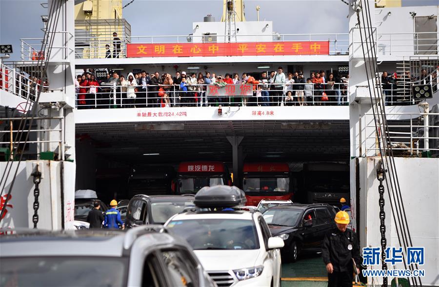 1月19日,乘客在客滾輪上等待下船。 新華社記者 郭程 攝