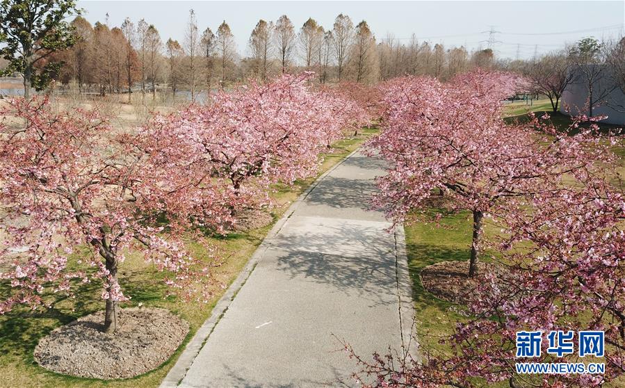 這是2月24日在上海松江辰山植物園內(nèi)拍攝的櫻花小徑(無(wú)人機(jī)照片)。 新華社記者 方喆 攝