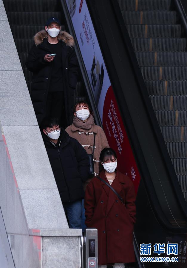 2月24日,在韓國首爾,當(dāng)?shù)鼐用癯俗詣臃鎏荨? 新華社記者 王婧嬙 攝
