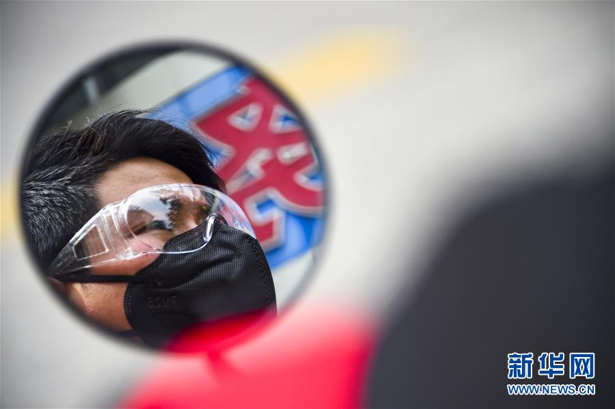 書(shū)院社區(qū)志愿者梁尚在騎車(chē)為居民送藥途中(2月23日攝)。 新華社記者 胡虎虎 攝