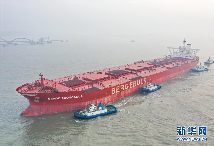2月24日,一艘40萬噸級輪船在拖輪的協(xié)助下向曹妃甸港區(qū)礦石碼頭靠泊(無人機(jī)照片)。 連日來,河北省唐山港曹妃甸港區(qū)為有效防控疫情、保證安全生產(chǎn),采取對進(jìn)入港區(qū)人員檢測體溫、對車輛進(jìn)行消殺等嚴(yán)格措施,為海、陸交通暢通和物資運輸提供保障。 新華社記者 楊世堯 攝