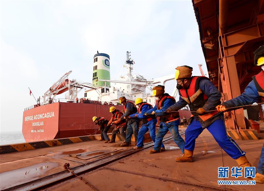 2月24日,在曹妃甸港區(qū)礦石碼頭,工人在為一艘靠岸的40萬噸級(jí)輪船拴掛纜繩。 連日來,河北省唐山港曹妃甸港區(qū)為有效防控疫情、保證安全生產(chǎn),采取對(duì)進(jìn)入港區(qū)人員檢測(cè)體溫、對(duì)車輛進(jìn)行消殺等嚴(yán)格措施,為海、陸交通暢通和物資運(yùn)輸提供保障。 新華社記者 楊世堯 攝