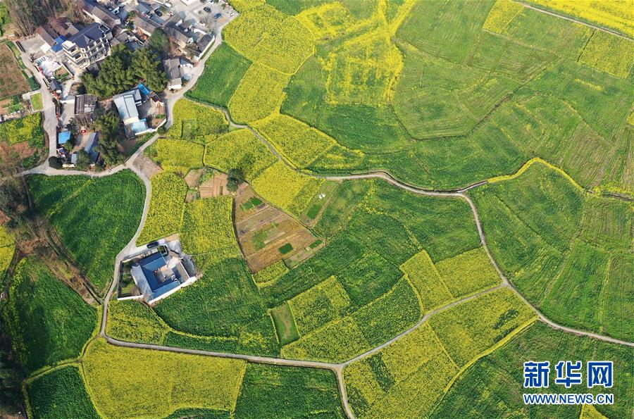 2月25日在四川省崇州市拍攝的油菜花田(無人機(jī)照片)。新華社記者王曦攝